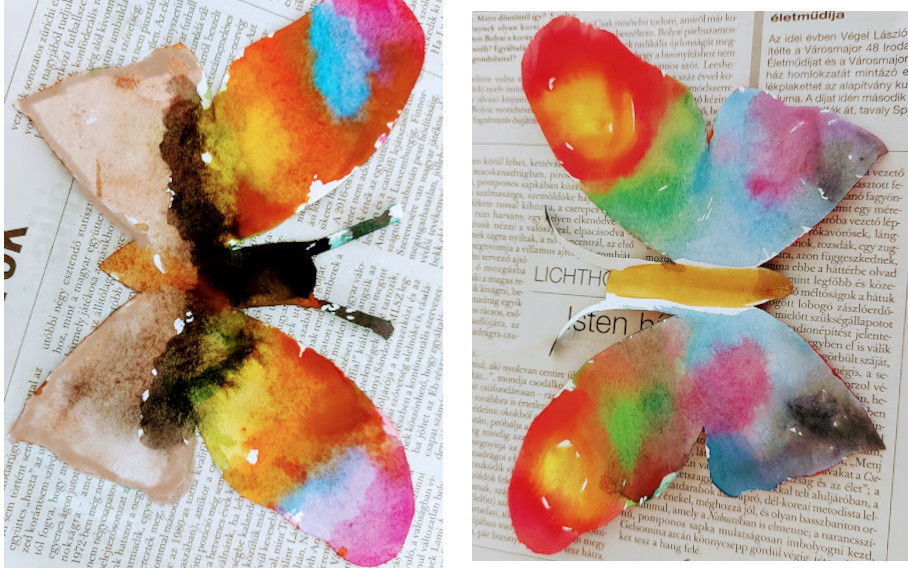 Hol találkozhatunk tavasszal lepkékkel? A legegyszerűbb, ha barkácsolunk. Azt még télen is lehet akár. A képen láthatót, pl. az unokáim csinálták festéssel, illetve a festék összefuttatásával.